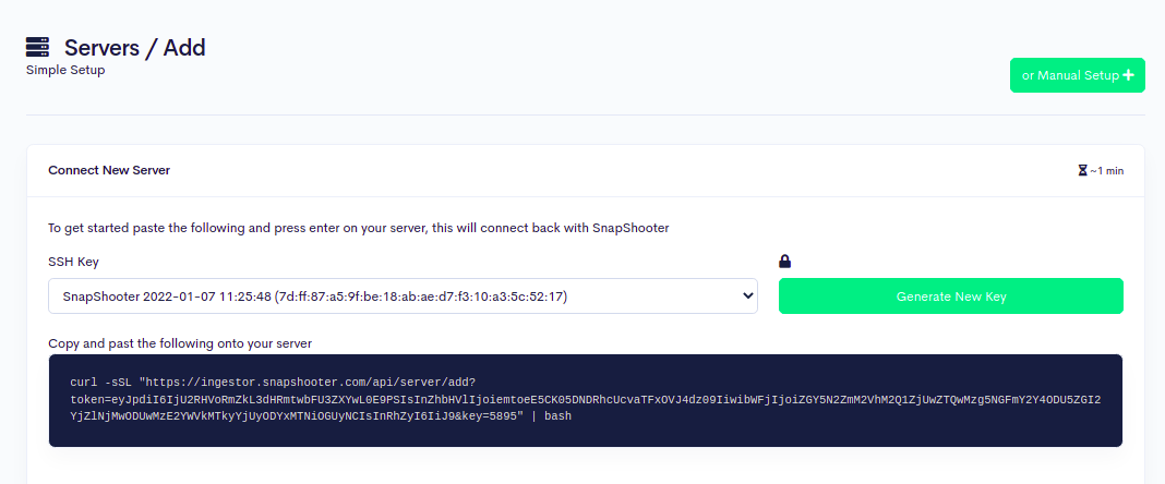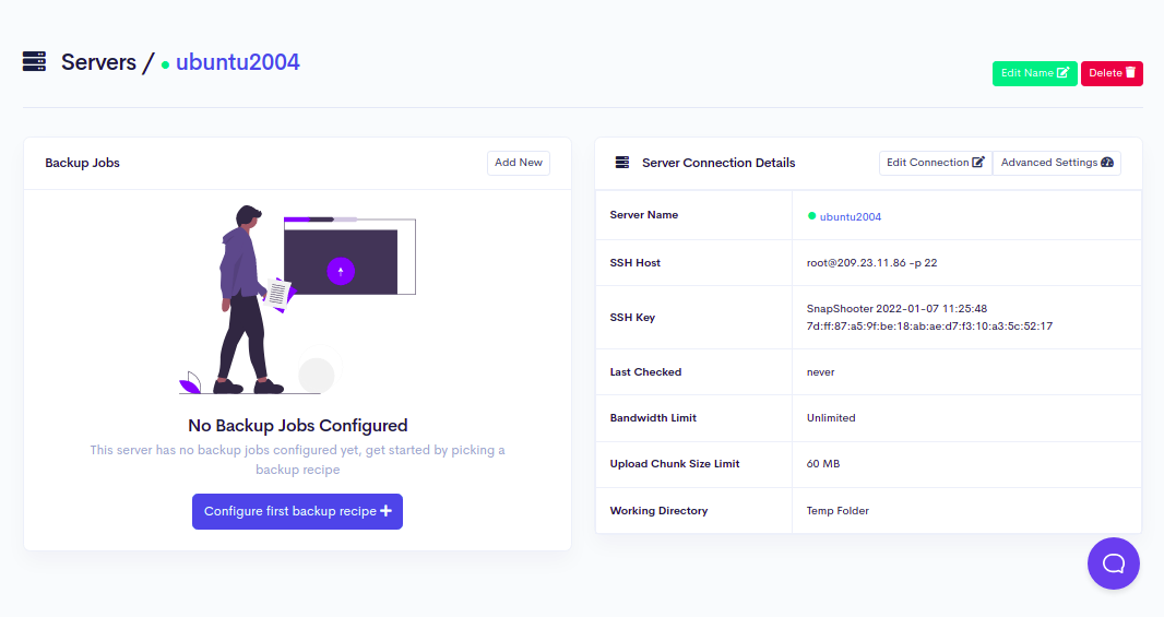 Next, go back to your SnapShooter dashboard, you should see your added server on the following screen: