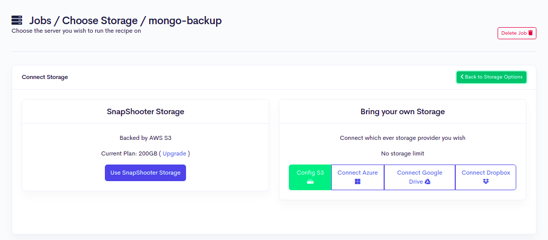 Next, you will need to create a backup job to automate MongoDB database backup to SnapShooter Storage.