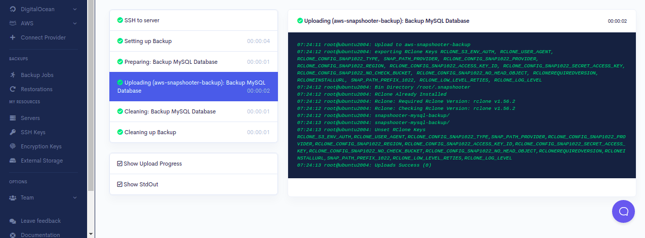 In the above guide, you learned how to backup MySQL database to Amazon S3 using SnapShooter and manually. I hope you can now easily back up any databases to Amazon S3 using SnapShooter.
