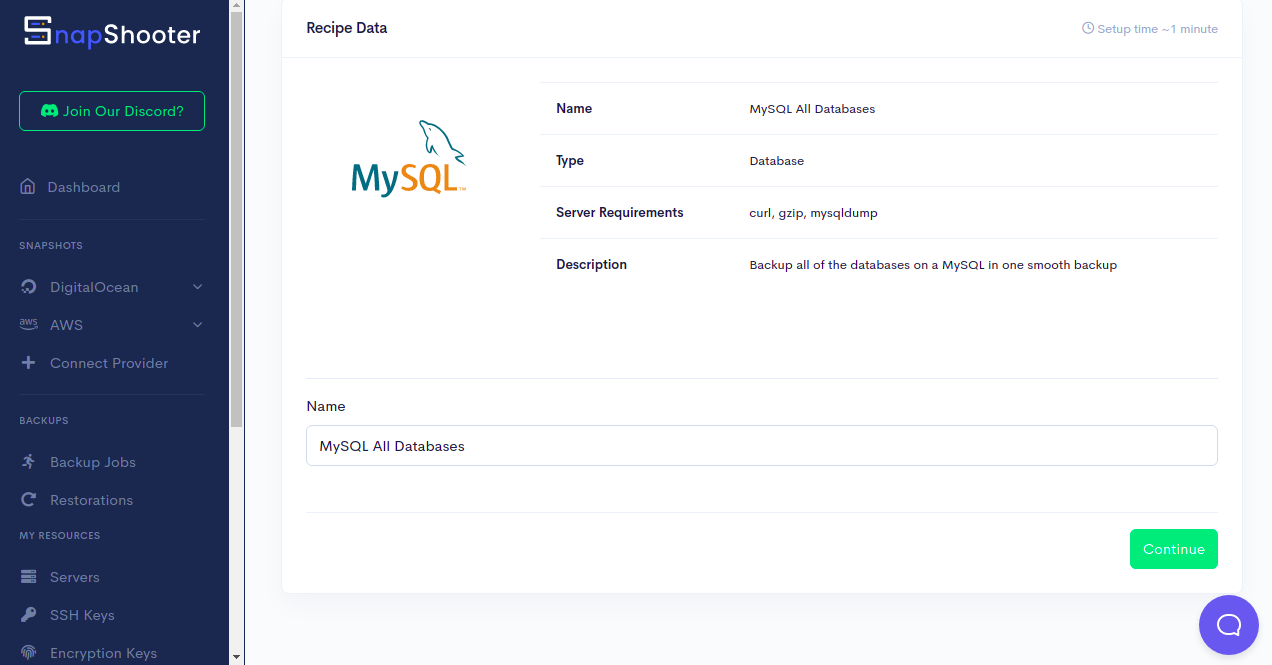 SnapShooter provides an easier way to create backups and archives from your server and store them on the Amazon S3 bucket. Follow the below steps to back up the MySQL database to the Amazon S3: